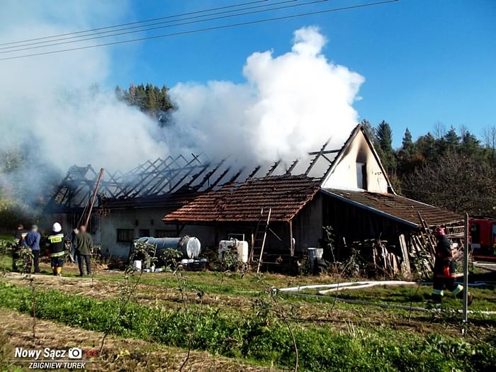 We wtorek ok. godz. 9.20 zauważony został pożar zabudowań gospodarczych w miejscowości Łącko. Do zdarzenia zadysponowano zastępy PSP z JRG 2 Nowy Sącz, jednostki OSP z terenu gminy Łącko oraz jedną jednostkę OSP z sąsiedniej gminy Podegrodzie, a mianowicie OSP Olszana. W chwili przybycia na miejsce pierwszych służb ratowniczych płonęło całe poddasze budynku gospodarczego, stodoły oraz przechowali owoców. Strażacy podali prądy wody bezpośrednio na pożar oraz w obronie na obiekty znajdujące się w niewielkiej odległości od palących się zabudowań gospodarczych, m.in. na drewniany budynek mieszkalny.