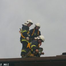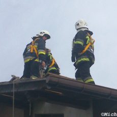 Po przybyciu i wstępnym rozpoznaniu strażacy ubrani w szelki bezpieczeństwa oraz przy pomocy drabiny dostali się na uszkodzony dach budynku, po czym zabezpieczyli go przy pomocy folii i dostępnych innych środków. Akcja ratownicza trwała ok. dwóch godzin.