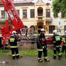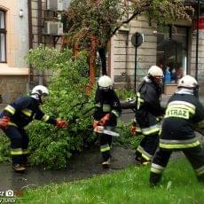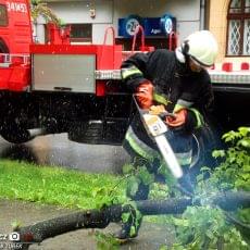 Dziś ok. godziny 11:45 kierowca autobusu miejskiego zawiadomił iż na ulicy Jagielońskiej, pochylone niebezpiecznie są konary drzewa, które zagrażają przechodniom oraz pojazdom poruszającym się po jezdni. Na miejsce zdarzenia zadysponowany został zastęp OSP Moszczenica Wyżna. Po przyjedzie na miejsce ustalono, iż konary drzewa niebezpiecznie zwisają nad jezdnią,jednakże ze względu na to iż znajdowały się one wysoko nad jezdnią dowódca zastępu z OSP Moszczenica Wyżna poprosił o zadysponowanie na miejsce zdarzenia specjalistyczny podnośnik z JRG. Po przyjedzie specjalistycznego podnośnika przystąpiono do usuwania zagrożenia.