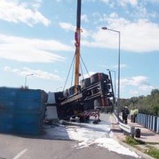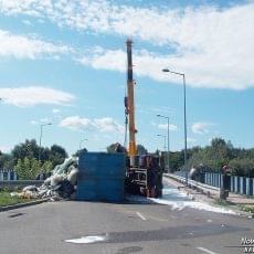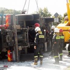 Dnia 18 sierpnia, około godziny 9 rano w Nowym Sączu na ulicy Chruślickiej samochód ciężarowy marki MAN przewożący śmieci przewrócił się na bok. Do zdarzenia zadysponowano dwa zastępy z JRG 1 w Nowy Sączu. Po przybyciu zastępów na miejsce zdarzenia ustalono , że na łuku drogi przy wjeździe na most na lewym pasie jezdni przewrócony był na lewy bok samochód ciężarowy.