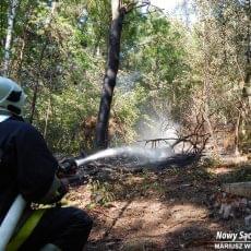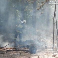 W upalne, sobotnie popołudnie, po godz. 14:00 ratownicy sądeckiego WOPR, którzy patrolowali quadem teren nad rzeką Kamienica, w ramach zabezpieczenia obszarów wodnych na obszarze miasta Nowego Sącza, zauważyli pożar ściółki leśnej w rejonie ul. Jamnickiej, tzw. Skałki. Zaalarmowane zostały służby ratownicze. Do zdarzenia skierowano zastępy z JRG 1 Nowy Sącz oraz jednostki OSP Nowy Sącz-Biegonice, Mszalnica, Mysktów oraz Paszyn, a także policję. Intensywny dym wydobywający się z lasu był bardzo dobrze widoczny z al. Piłsudskiego.