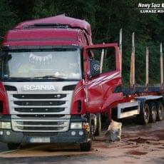 41- letni mieszkaniec pow. limanowskiego kierując samochodem ciężarowym marki Scania z naczepą przewożącą kłody drzewa, nie dostosował prędkości do warunków drogowych w wyniku czego na łuku drogi doprowadził do wywrócenia się pojazdu i wypadnięcia na jednię przewożonego ładunku. Kierujący w stanie po użyciu alkoholu. W organizmie miał prawie pół promila alkoholu. Kierujący doznał lekkich obrażeń ciała. – powiedziała nam sierż.sztab.Justyna Basiaga z KMP w Nowym Sączu.