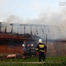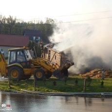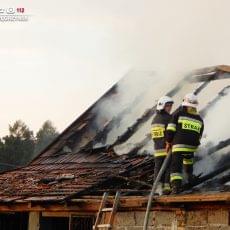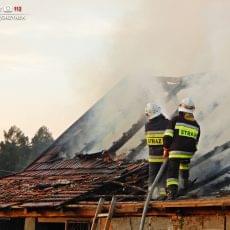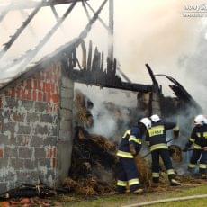 Strażacy podali dwa prądy wody w natarciu, jeden w obronie budynku mieszkalnego oraz drugi na palący się budynek gospodarczy. Ewakuowane został także zwierzęta gospodarskie które znajdowały się w budynku. W celu wyniesienia pozostałości siana które znajdowało się w pomieszczeniach wykorzystano koparkę. Na miejsce przybył także zastęp ZRM. Całość konstrukcji dachu uległa spaleniu. Drewniane elementy dachu zostały rozebrane i dogaszone wodą. W akcji ratowniczo gaśniczej, która trwałą około czterech godzin uczestniczyło 42 strażaków oraz siedem zastępów. Przyczyna pożaru pozostaje nie ustalona, policja ustala jej dokładne przyczyny.
