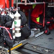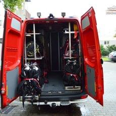 Samochód wyposażony został w nowoczesny sprzęt do ratownictwa wodnego m.in.: zestaw ośmiu butli do nurkowania, skafandry wodne, linki ratownicze, nosze typu deska, kamizelki ratunkowe. W pojeździe zamontowana została także wyciągarka samochodowa. Oświetlenie robocze stanowią lampy led, które zostały zamontowane po bokach oraz z tyłu pojazdu. Sygnalizację świetlną tworzą belka ledowa firmy Gamet wraz z czerwoną sygnalizacją używaną podczas gdy pojazd pilotuje lub zamyka kolumnę. W przedniej części zamontowane zostały również mikroledy.