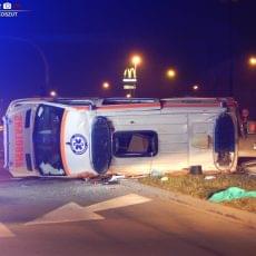 Siła uderzenia była tak mocna, że karetka pogotowia przewróciła się na lewy bok, uszkodziła znajdujące się na ul. Kilińskiego dwa sygnalizatory świetlne, po czym „wylądowała” na pasie zieleni. Samochód osobowy znajdował się poza rondem, blokując jeden pas ruchu.