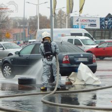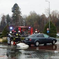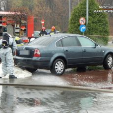 W sobotę około godziny 12:32 Państwowa Straż Pożarna w Nowym Sączu wraz z Policją prowadziła działania na parkingu pod jedną z galerii handlowych przy ulicy Prażmowskiego. Na miejsce skierowano trzy zastępy z JRG 1 Nowy Sącz w tym grupę chemiczno-ekologiczną oraz policje.