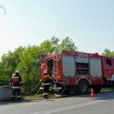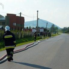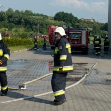 Tuż przed godziną osiemnastą zgłoszony został pożar hali w Owocu Łąckim w Olszanej. Jako pierwsze zaalarmowane zostały pobliskie jednostki OSP wraz z zastępem z JRG 2 w Nowym Sączu. Po przyjeździe pierwszych SIS paliły się hale, zostały poddane cztery prądy wody. Strażacy wyposażeni w aparaty ochrony dróg oddechowy AODO, przeszukali oni pomieszczenia biurowe. Wszyscy pracownicy zostali ewakuowani. Decyzją kierującego działaniem ratowniczym zadysponowane zostały jednostki KSRG z gminy Łącko oraz następne zastępy z gminy Podegrodzie.W znacznej odległości od miejsca pożaru zlokalizowany został potok, przy którym został utworzony punkt czerpalny wody. Jednostka z OSP Łącko wraz z druhami z OSP Brzezna zorganizowała miejsce pompowania wody do brezentowego zbiornika wodnego. Wykorzystano metodę przepompowywania wody z rzeki do miejsca pożaru. Podczas prowadzonych ćwiczeń występowały utrudnienia w ruchu drogowym, na odcinku od szkoły do zakładu rozwinięte zostały węże pożarnicze W-75, również samochody gaśnicze zajmowały jeden pas jezdni. Wszystkie założenia wtorkowych ćwiczeń zostały zrealizowane. Była to bardzo dobra okazja do zapoznania się z terenem obiektu, kluczowe znaczenie miało też współdziałanie jednostek straży pożarnej.