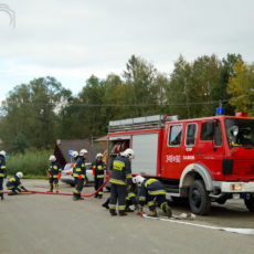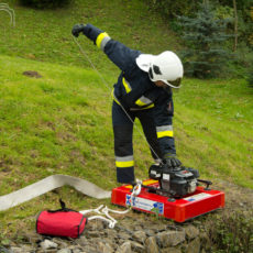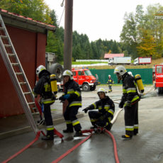Strażacy w aparatach ochrony dróg oddechowych przystąpili do przeszukania pomieszczeń nie zajętych przez ogień w celu ewakuacji pracowników zakładu którzy znajdowali się wewnątrz. Jeden z pracowników nie okazywał funkcji życiowych, strażacy wykonali RKO które przyniosło efekt i poszkodowany odzyskał funkcje życiowe, podany również został mu tlen. W celu ochrony przed utrata ciepła nakryty został folią NRC, pozostał on pod opieką druhów z OSP Moszczenica Wyżna do czasu przybycia karetki pogotowia. Drugi z poszkodowanych pracowników przy pomocy strażaków opuścił budynek o własnych siłach, również podany został mu tle oraz udzielone zostało wsparcie psychiczne. Przy pomocy drabiny D10-W został podany prąd wody z góry. Zastęp z OSP Moszczenica Niżna rozstawił kurtynę wodą w celu ochrony zagrożonych obiektów. Również sprawili oni linie gaśniczą podawaną przez drabinę na dach budynku. Z względu na trudne zaopatrzenie wodne do miejsca zdarzenia dysponowane zostały kolejne siły i środki z gminy Starego Sącza i miasta Nowego Sącza. Zastępy rozwijały linie zasilające z samochodów bojowych. W dużej odległości od miejsca pożaru z pobliskiej rzeki zorganizowany został punkt stanowiska wodnego przy którym pracowali strażacy z OSP Gołkowice Górne, motopompa pływająca zaopatrywała ciężki zastęp z Gołkowic który podawał wodę do zastępów zlokalizowanych na drodze, skąd następnie woda trafiała do zastępów będących bezpośrednio najbliżej miejsca pożaru. Po zakończeniu wszystkich założeń manewrów zastępca komenda miejskiego PSP w Nowym Sączu st.bryg. Paweł Motyka podsumował ćwiczenia na odprawie końcowej. Podkreślił on bardzo dobrą i szybką współpracę jednostek biorących udział. Po podsumowaniu odbył się poczęstunek dla uczestników.