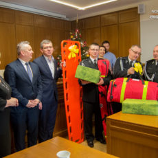 W dniu dzisiejszym (27.12.2017)w urzędzie gminy Starego Sącza odbyło się przekazanie sprzętu dla czterech jednostek OSP z terenu gminy. Z rąk burmistrza Starego Sącza Jacka Lelka sprzęt odebrały delegacje z poszczególnych jednostek. Zakupione zestawy PSP R1 w którego skład wchodziły szyny Kramera, nosze typu deska oraz torba medyczna wraz z wyposażeniem według norm KSRG trafiły do OSP Stary Sącz, Gołkowice Górne, Barcice oraz Moszczenicy Wyżnej. Natomiast defibrylatory AED trafiły w ręce druhów z OSP Gołkowice i Starego Sącza.Zakup był możliwy dzięki ministerstwu sprawiedliwości który w całości pokrył koszty zakupu.
