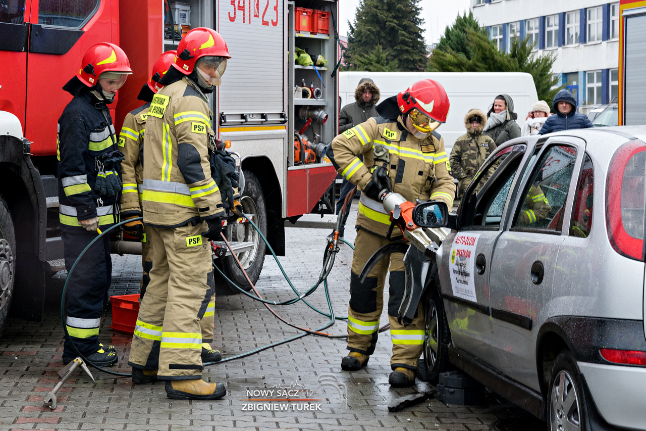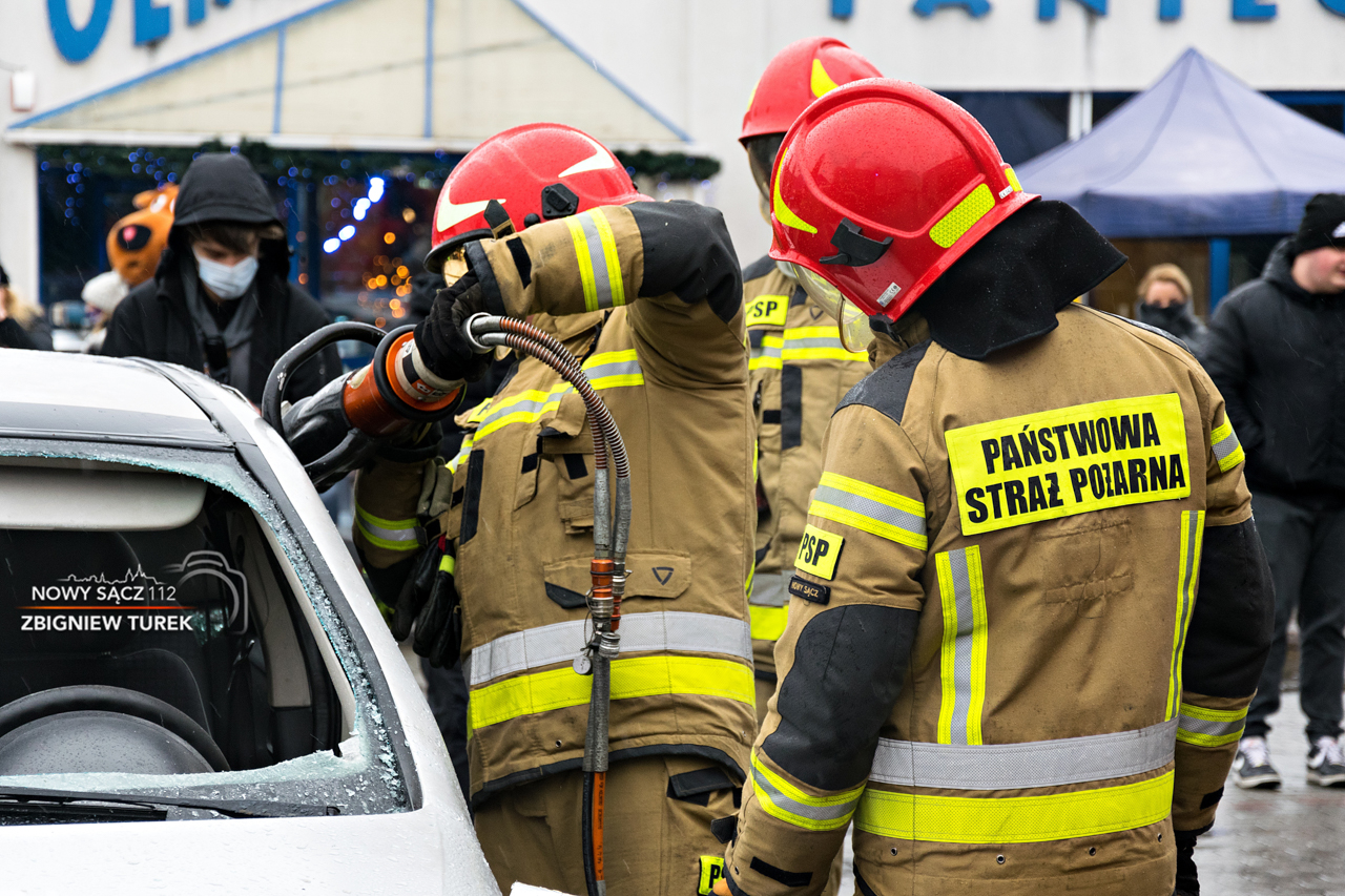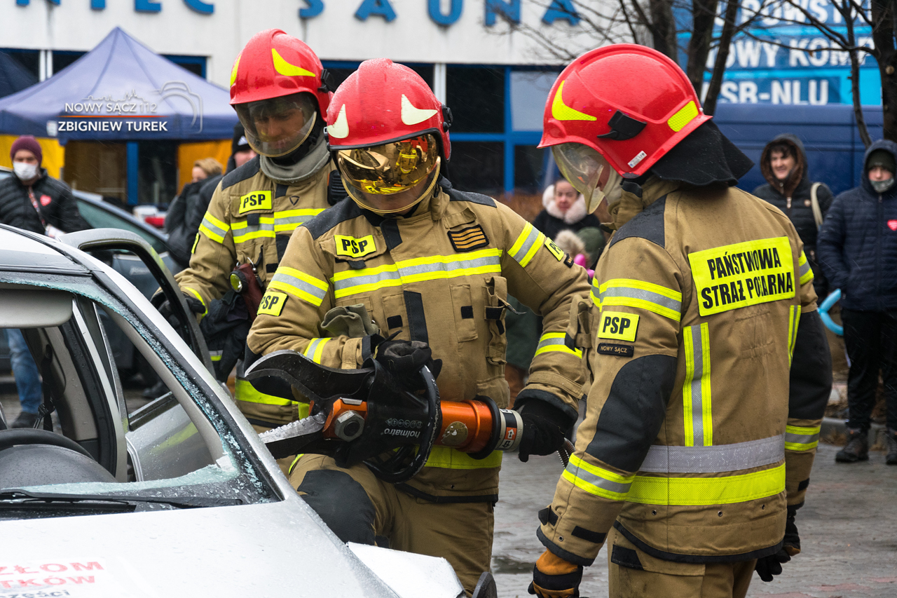 W niedzielne popołudnie (30.01.2022) na terenie uczelni WSB-NLU przy ul. Zielonej w Nowym Sączu podczas trwania 30. finału Wielkiej Orkiestry Świątecznej Pomocy odbył się pokaz ratownictwa technicznego w wykonaniu druhów z OSP Nowy Sącz – Biegonice oraz JRG 1 PSP Nowy Sącz.